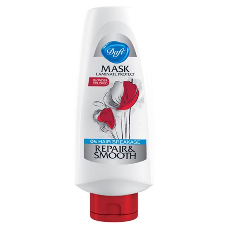 معمولا موها در اثر رنگ و دکلره دچار آسیب میشوند که نیاز به مراقبت و رسیدگی به موها در این زمان بیشتر از هر زمان دیگری نیز احساس میشود. شما برای جلوگیری از آسیب دیدن مو در اثر رنگ کردن موها، باید کارهای پیشگیرانه را انجام دهید. ابتدا موهای خود را با شامپوی مناسب موهای خود بشویید و بعد باید آن را با ماسک موی مناسب تقویت و ترمیم کنید. ماسک مو دافی مناسب موهای رنگ شده و بلوند از مو مراقبت میکند و با روغنهایی مانند روغن گردو، جوانه گندم و آفتابگردان از موها در برابر آسیبها محافظت میکند. این ماسک هم رطوبت رسان است، هم موها را ترمیم میکند، هم موهای بسیار خشک را نرم و کراتین میکند و در نهایت نیز از کدر شدن موها بر اثر رنگ و دکلره کردن حلوگیری میکند. این ماسک همچنین دارای بیوتین، روغن آرگان، عصاره جوانه گندم است که به مستحکم شدن بیشتر موها کمک میکند.
