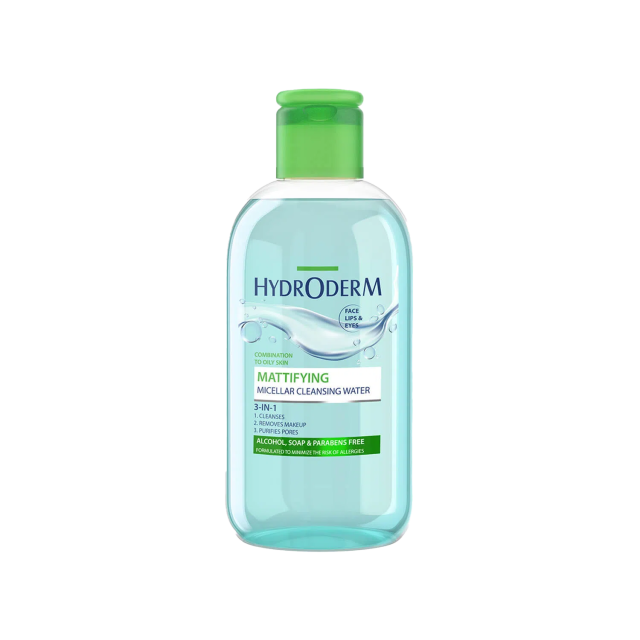 میسلار واتر هیدرودرم مدل Mattifying محصولی سه کاره است که ضمن پاک کردن آلودگی ها و لوازم آرایشی، پوست را مات کرده، سایز منافذ را کاهش داده و چربی اضافه آن را کنترل می کند. این محصول برای پوست های چرب، مختلط و جوش دار فرموله شده و در یک مرحله، مواد آرایشی، گرد و غبار و آلودگی ها را از روی پوست پاک خواهد کرد. میسلار واتر هیدرودرم فاقد الکل، پارابن و مواد صابونی بوده، برای صورت، چشم و لب قابل استفاده است و ضمن تقویت پوست، آن را با طراوت خواهد کرد.